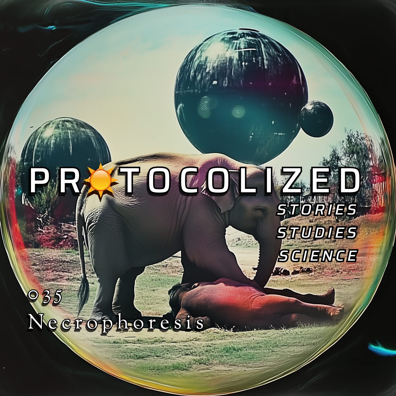 In one garden, we watched an elephant’s trunk caress a sun-bleached bone inside a muddy hole. In another, an orca whale dragged the decaying carcass of its daughter through the waves. Text and audio explainers of the behavior communicated the intricacies and contexts of the scenes. We sat on a bench as a family of six, missing its father, sat shiva. We watched as a group of Torajans cared for their mummified daughter as if she was still living. A group of early-human shared-reality avatars cried in blurry pixelation as their MMO world was decommissioned. Bree grew nauseous as we watched Issedonians consume the body of their patriarch, gild his skull, and then bury him in the winter snow.