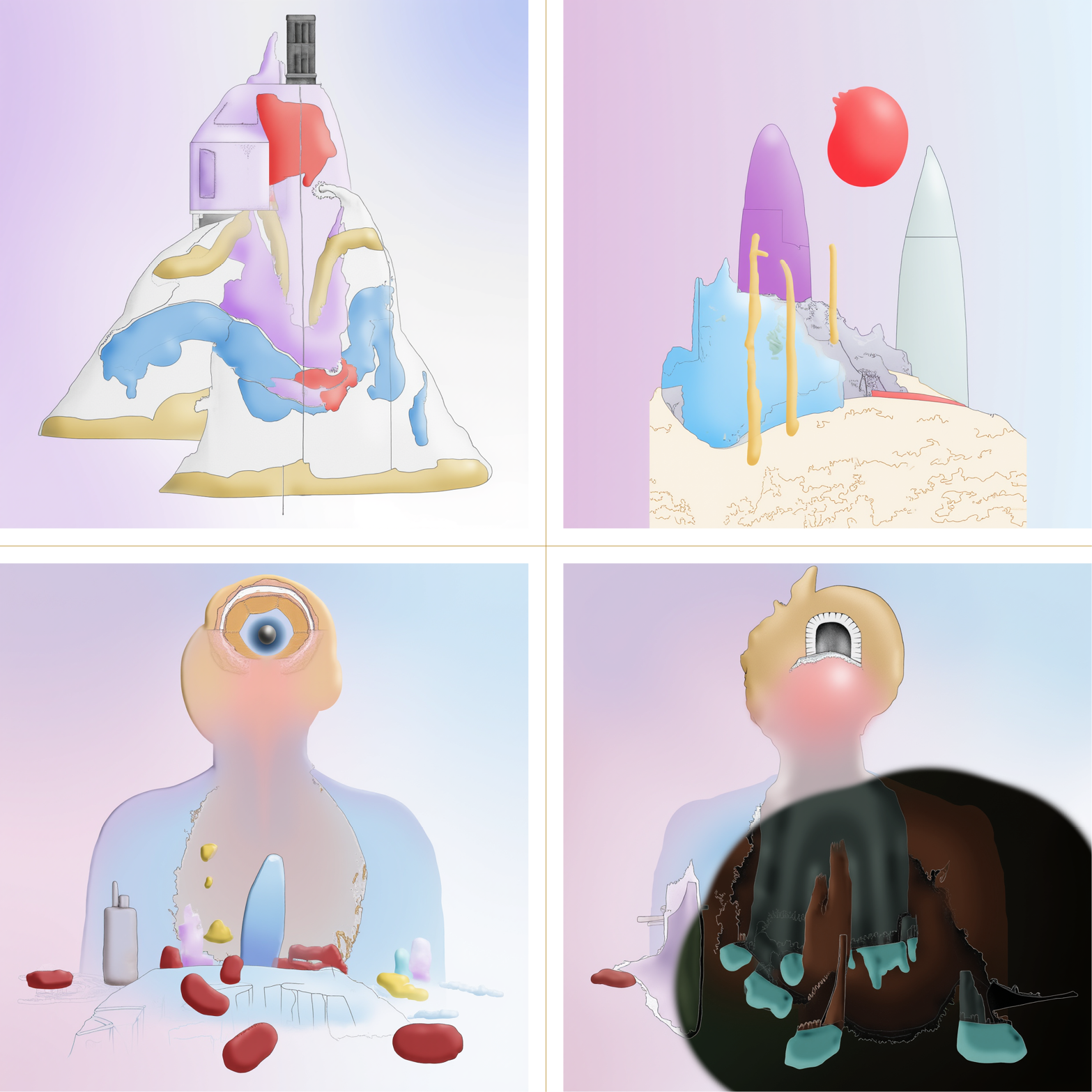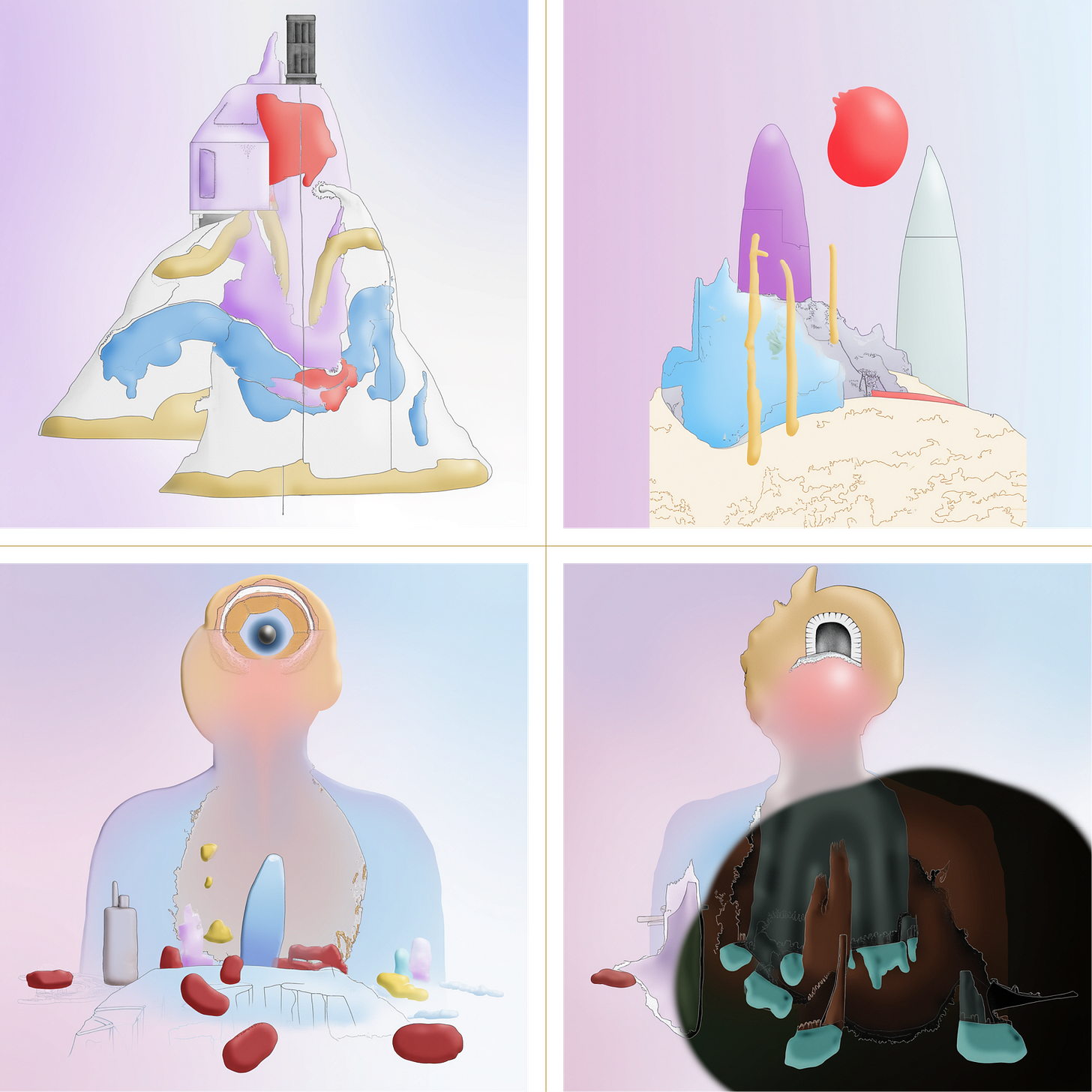 Were we to have illustrated this story with the author’s model, we might have conflated the environment of Serenity Now with an abstract metabolic system, or introduced an anatomical reference image to emphasise bodily form. Darker, scattered elements would lend a hint of menace.