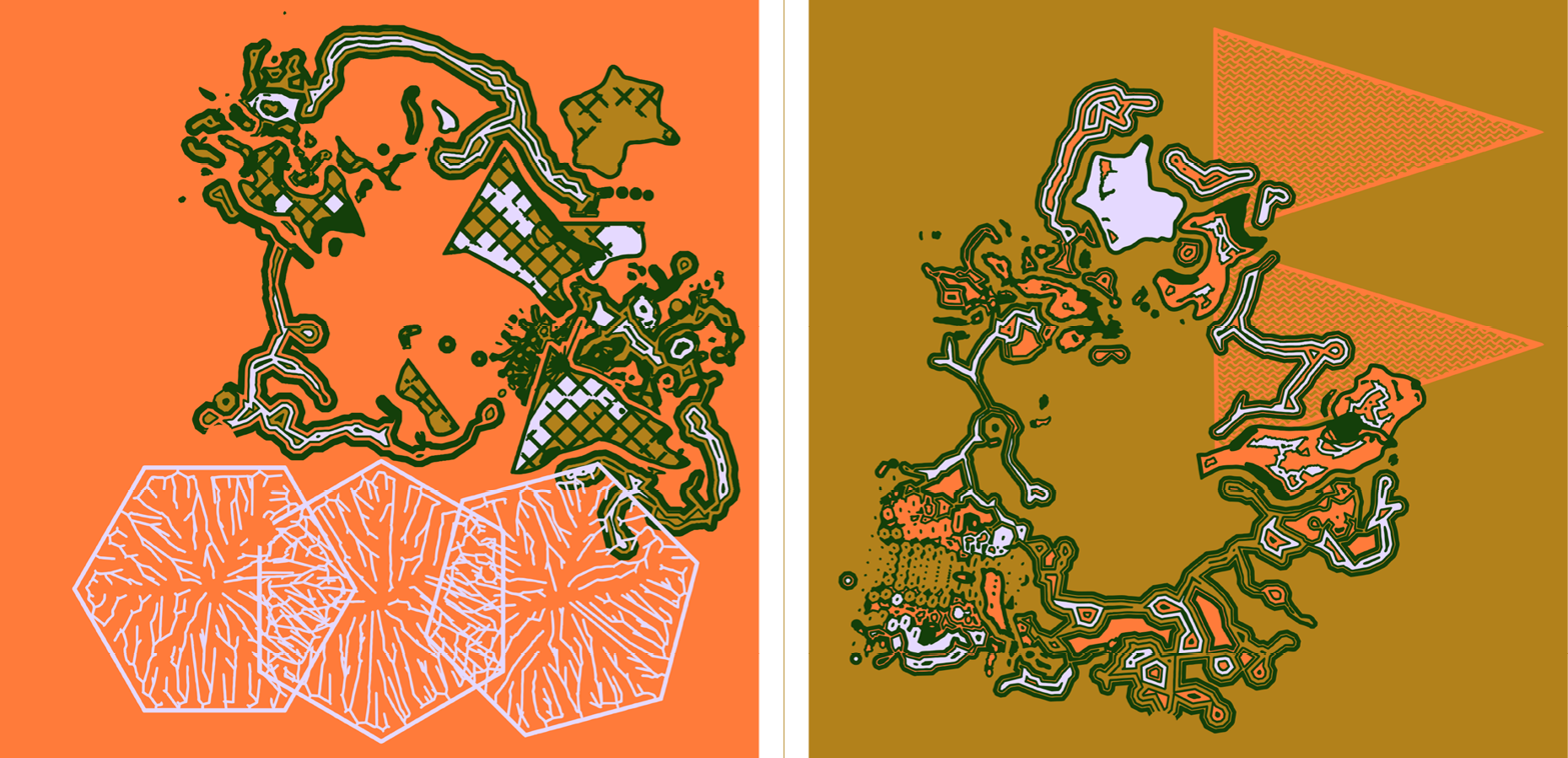 We invited Darius Ou of hyperpress to produce art for the first model. Darius’s training art is a byproduct of his incredible work in 3D printing, exploiting its primary graphic devices: the slice and the cross-section. Darius created an intricate 3D tree structure which was then sliced in software to produce fragmentary 2D cross sections, which Darius calls Spaceland Trees, in reference to Edwin A. Abbott’s 1884 novella Flatland, whose two-dimensional protagonists are categorically unable to conceive of a three-dimensional world.